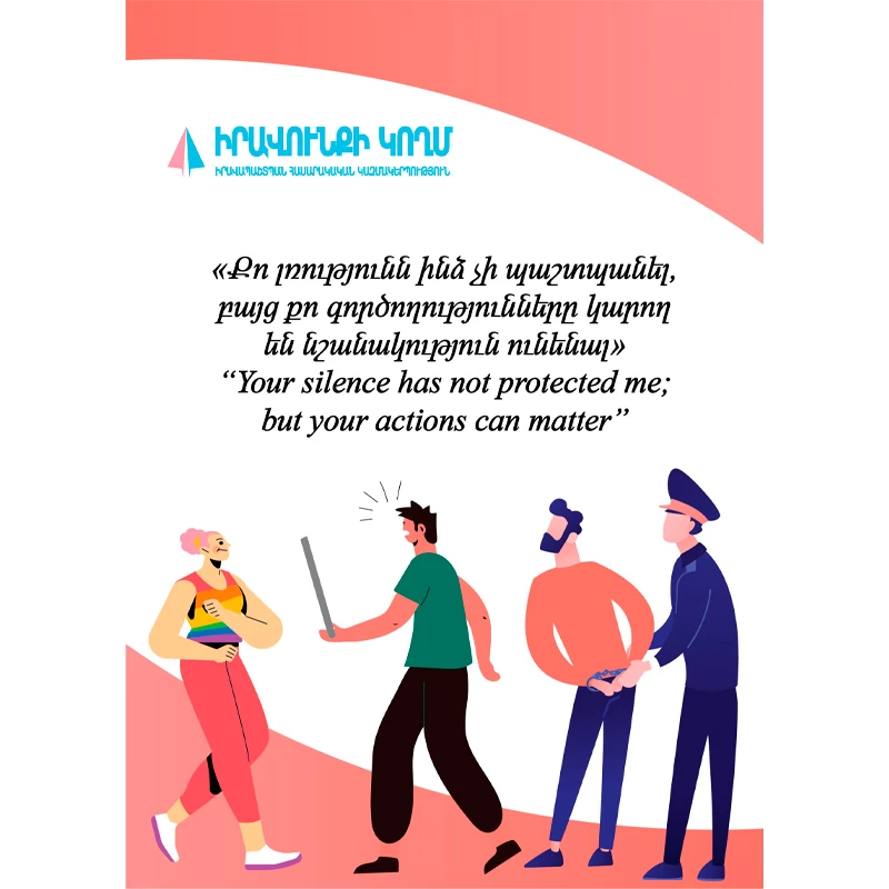 Ծրագրի ընթացքում «Գործողությունների միջոցով մարտահրավեր նետենք խոցելիությանը» դասընթացի մասնակիցները մշակել են հատուկ պաստառներ՝ «Ես ունեմ ՔՈ օգնության կարիքը» թեմայով, որոնք բաժանվելու են ոստիկանության աշխատակիցներին Երևանում և ՀՀ մարզերում։ Պաստառների նպատակն է բարձրացնել ոստիկանների տեղեկացվածությունը ԼԳԲՏԻՔ+ համայնքի կարիքների և մարտահրավերների վերաբերյալ և խրախուսել նրանց՝ ցուցաբերել պատշաճ աջակցություն և պաշտպանություն ԼԳԲՏԻՔ+ համայնքի անդամներին: