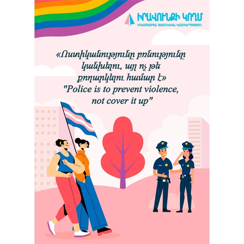 ԼԳԲՏԻՔ+ անձինք ոստիկանություն դիմելիս հաճախ իրենք իրենց ապահով չեն զգում, քանի որ բախվում են խտրականության ոստիկանների կողմից, նրանց բողոքներին պատշաճ ընթացք չի տրվում։ Իրավապահ մարմինների անգործությունը ԼԳԲՏԻՔ+ անձանց պարագայում հանգեցնում է անպատժելիության մթնոլորտի ձևավորման և իրավունքների ոտնահարման: Կարևոր է, որ ոստիկանությունը առաջնահերթություն տա ԼԳԲՏԻՔ+ համայնքի անդամների նկատմամբ բռնությունների կանխարգելմանը, ինչպես նաև ԼԳԲՏԻՔ+ անձանց նկատմամբ բռնությունները փաստագրի որպես ատելության հիմքով հանցագործություն՝ պայմանավորված սեռական կողմնորոշմամբ կամ գենդերային ինքնությամբ։